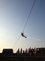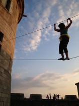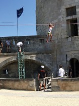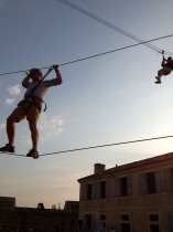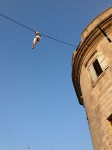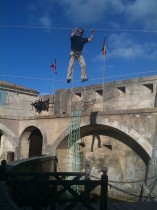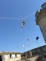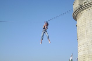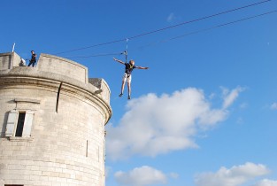 Effets immédiats garantis avec la tyrolienne en surplomb du donjon, le pont suspendu au rempart, le filet plongeant dans la douve.